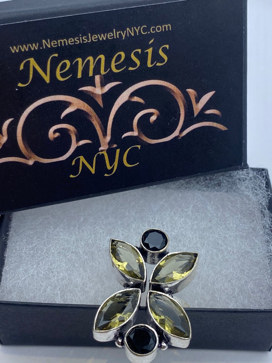 Vintage Black Onyx Smoky Topaz Silver Cocktail Ring Adjustable