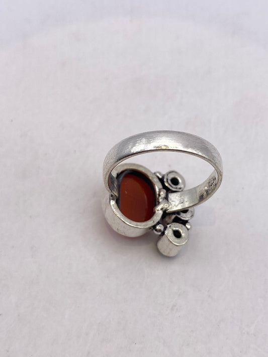 Vintage Red Carnelian Citrine Silver Bronze Ring