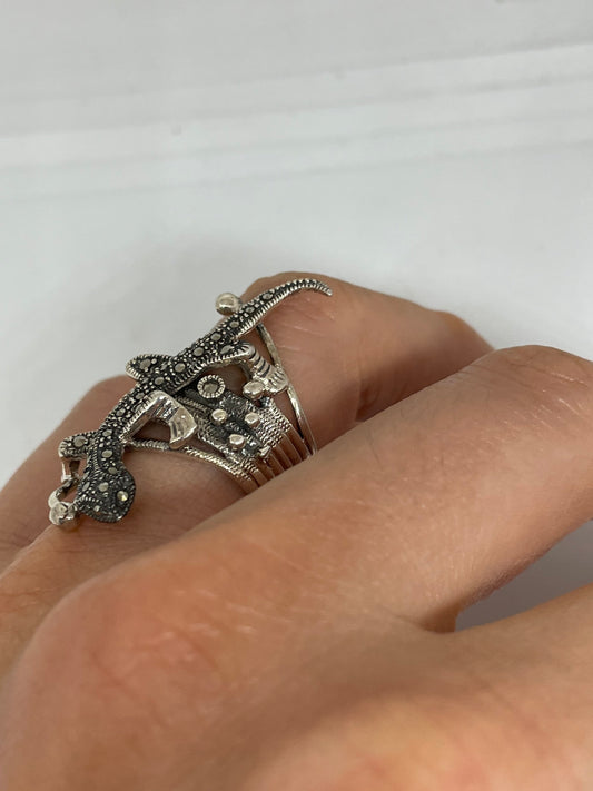 Vintage Swiss Marcasite 925 Sterling Silver Lizard Ring Size 8.5