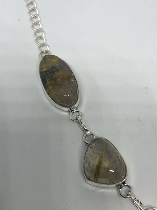 Vintage Golden Rutile Quartz Silver collar Necklace Choker