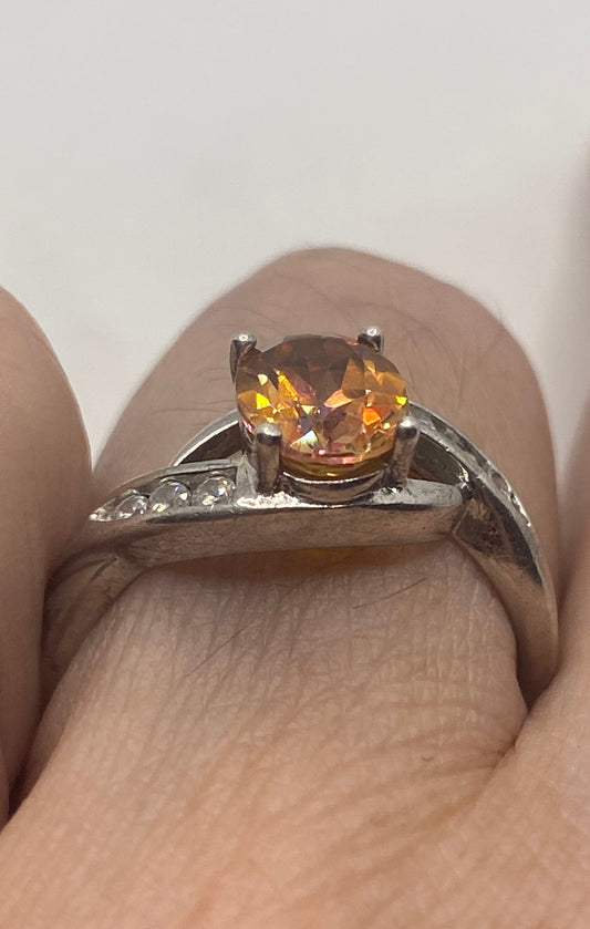 Vintage Golden Orange Citrine 925 Sterling Silver Ring