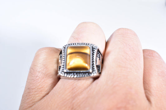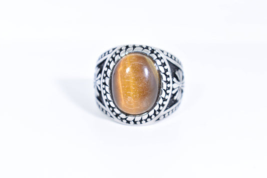Vintage Gothic Cross Stainless Steel Genuine Tigers Eye Ring