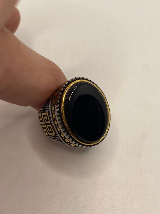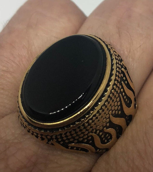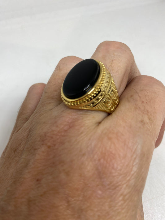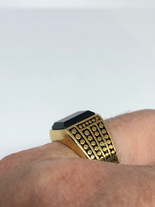 Vintage Gothic Gold Finished Stainless Steel Black Onyx Genuine Ring