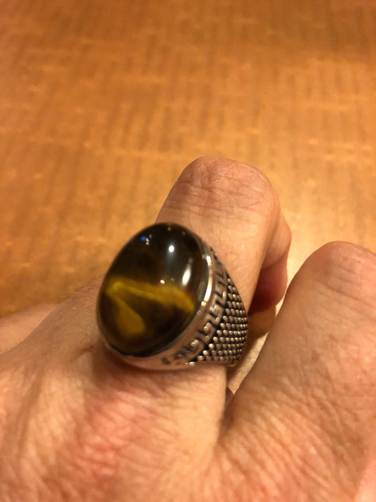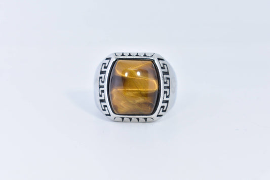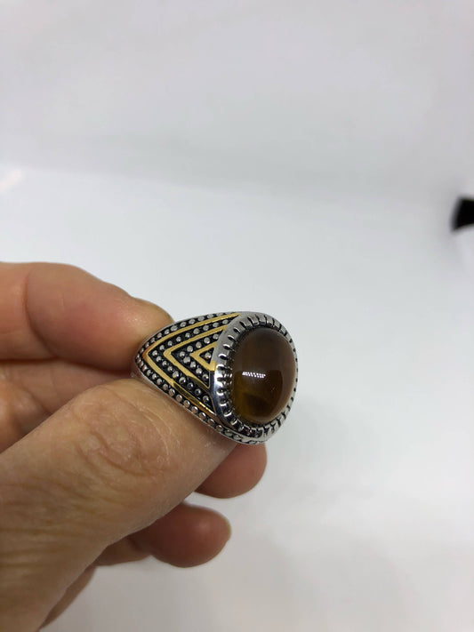 Vintage Gothic Stainless Steel Genuine Tigers Eye Ring