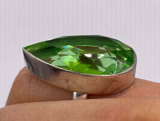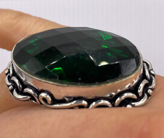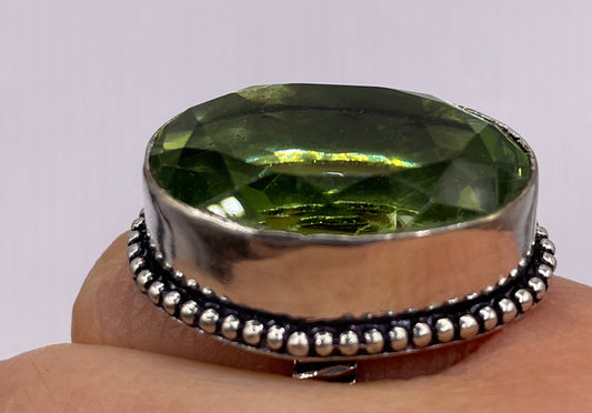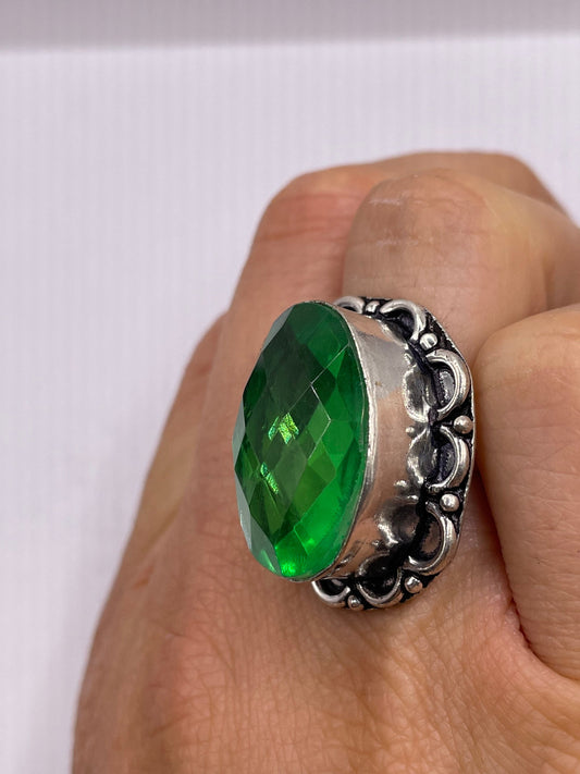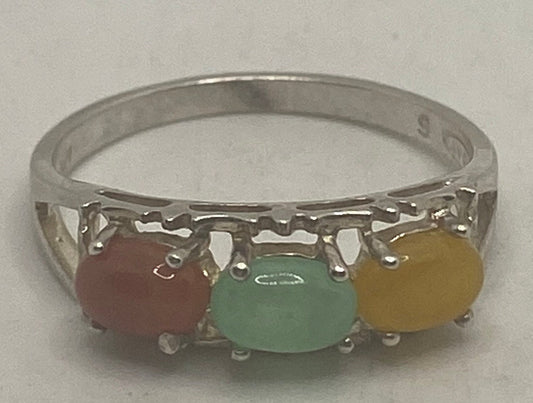 Vintage Green and Orange Jade 925 Sterling Silver Ring Size 9