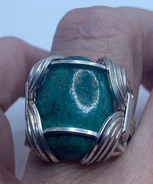 Vintage Green Chrysoprase Ring 925 Sterling Silver Size 7