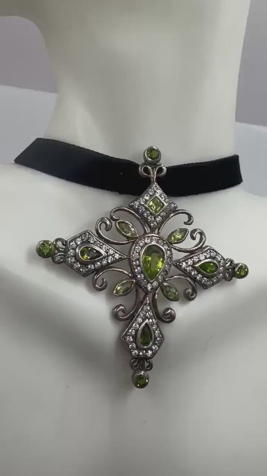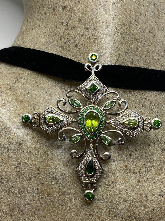 Vintage Green Cross Choker 925 Sterling Silver Crome Dipsode and Peridot Pendant