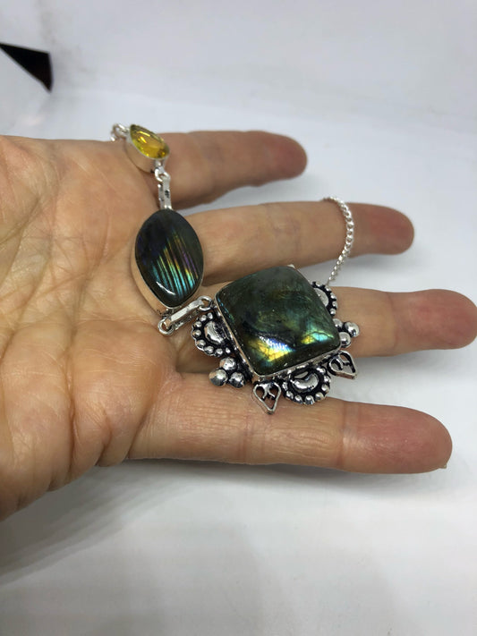 Vintage Green Labradorite 925 Sterling Silver Necklace Choker