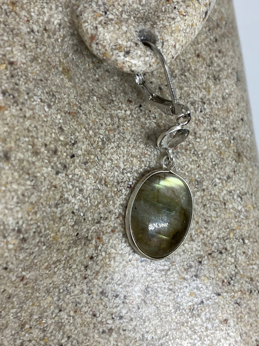 Vintage Green Labradorite Dangle Earrings 925 Sterling Silver Lever Backs