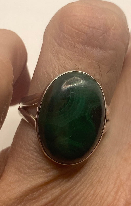 Vintage Green Malachite Ring 925 Sterling Silver Size 6.75