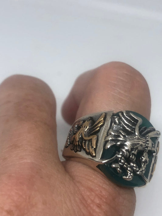 Vintage Green Onyx Eagle with Snake 925 Sterling Silver Ring