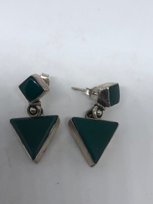 Vintage Green Onyx Earring 925 Sterling Silver Deco Dangle Chandelier