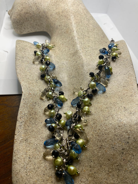 LoppuunmyytyVintage Green Pearl Crystal 22 in Charm Necklace