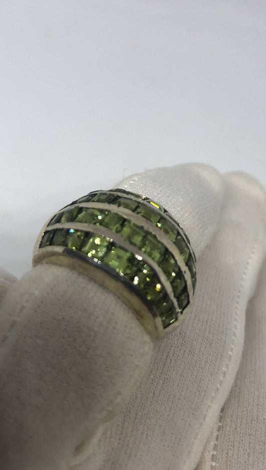Vintage Green Peridot 925 Sterling Silver Wedding Band Ring
