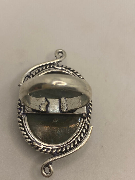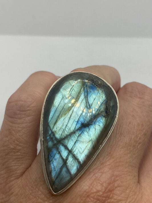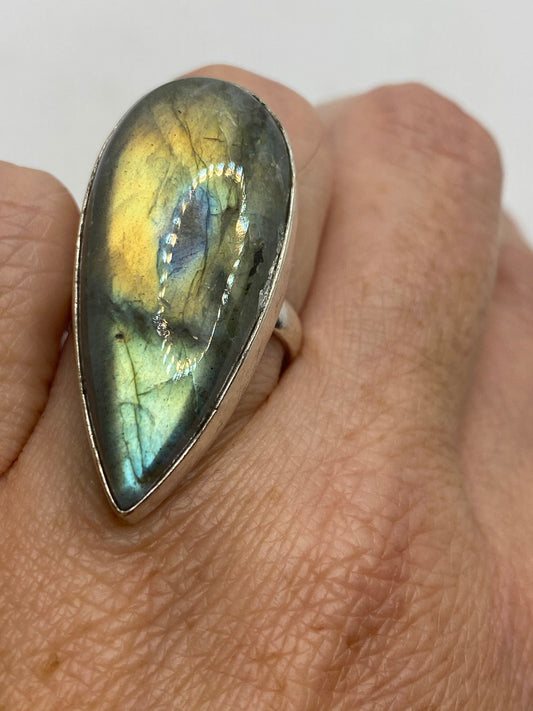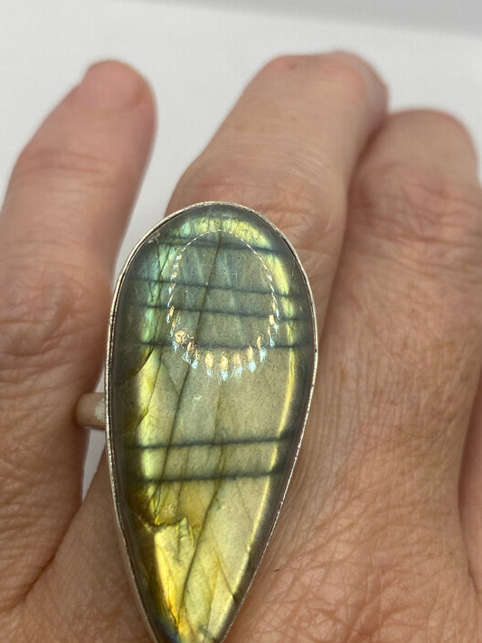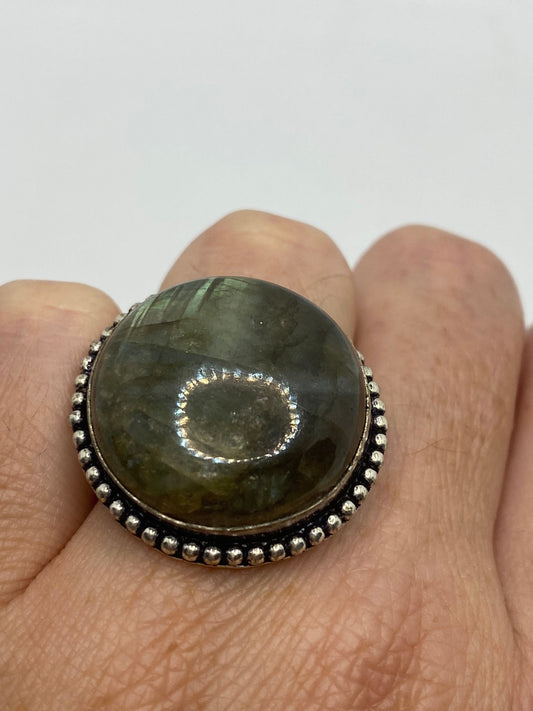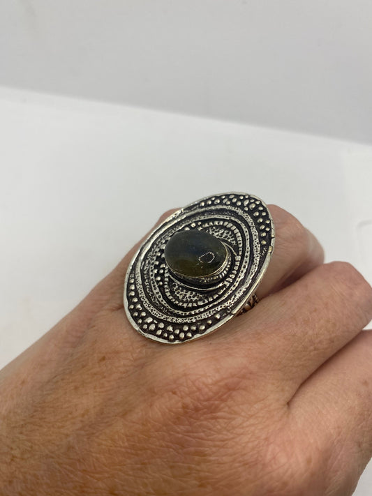 Vintage Green Rainbow Labradorite Silver Statement Ring