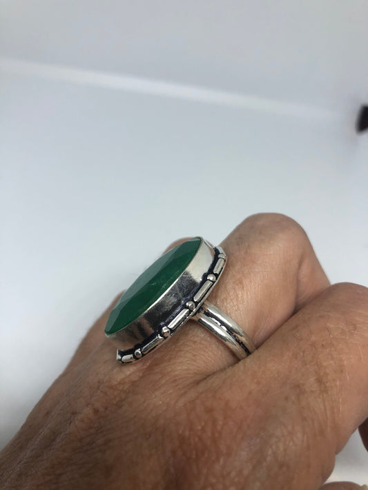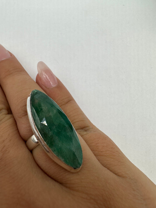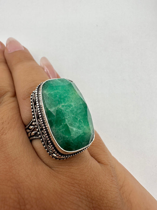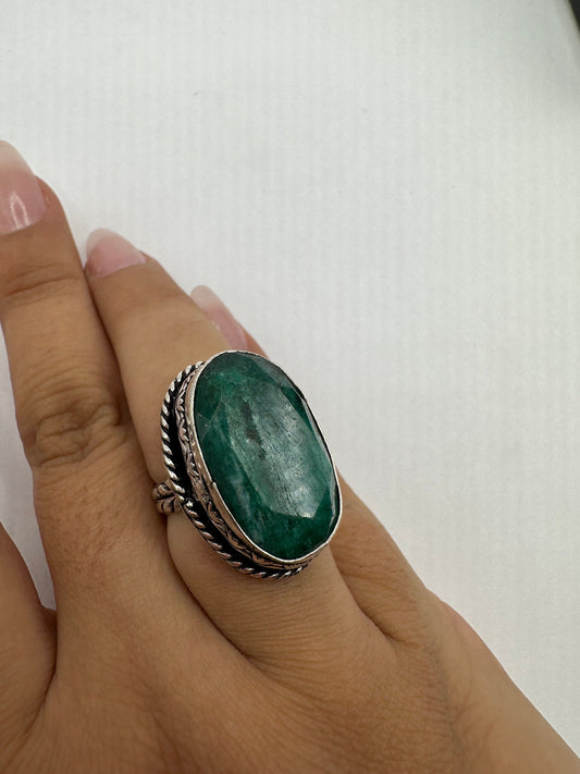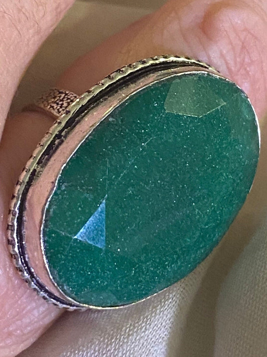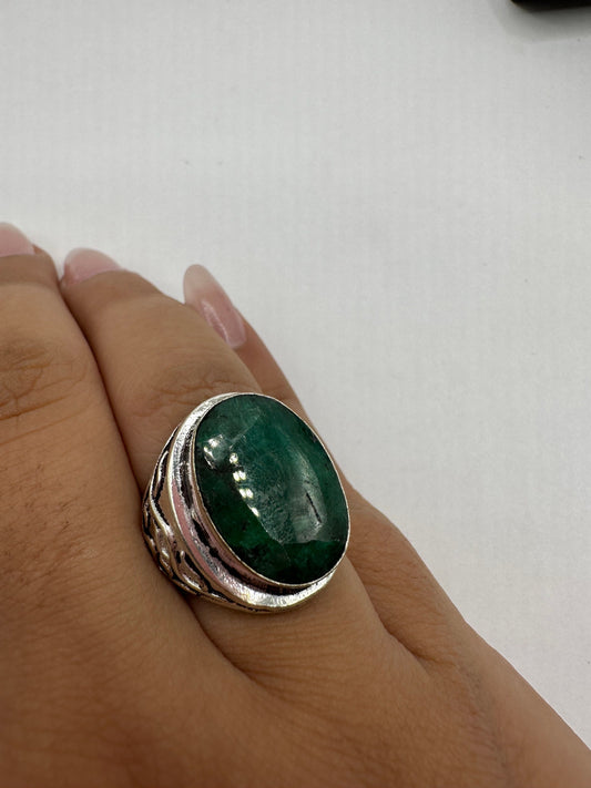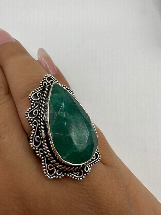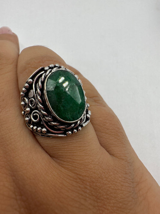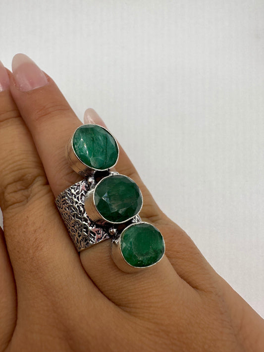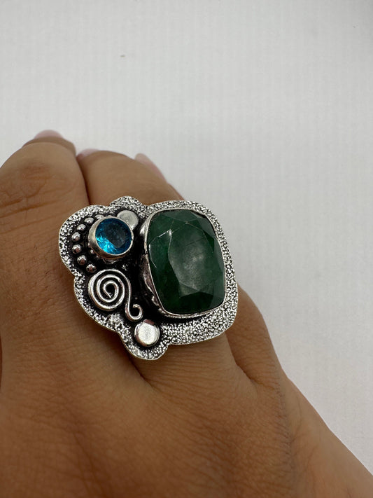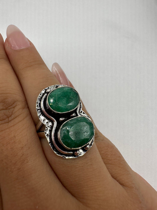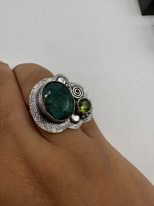 Vintage Green Raw Emerald Silver Bronze Statement Boho Ring