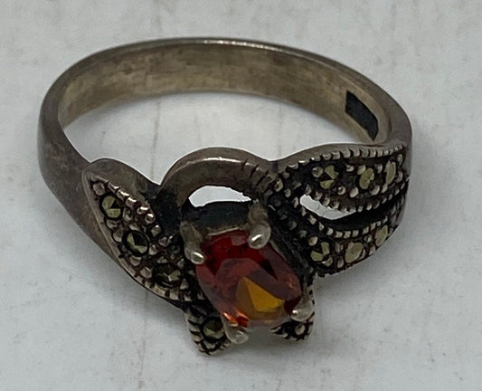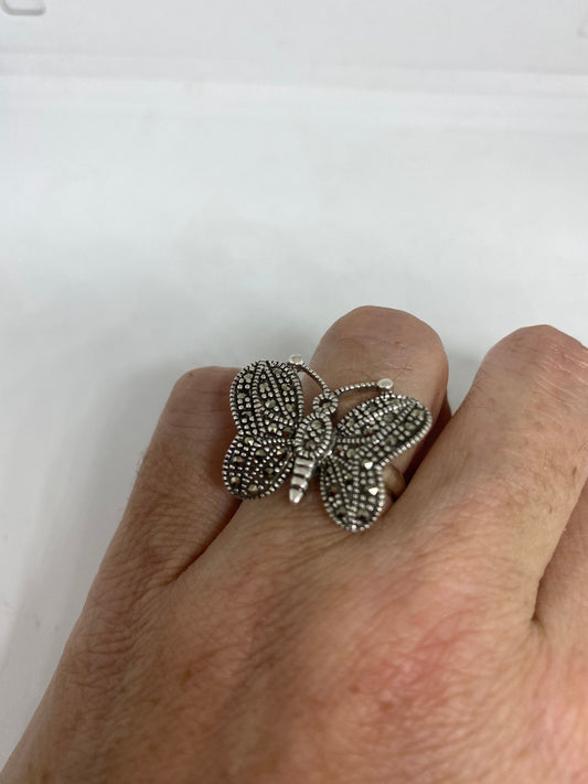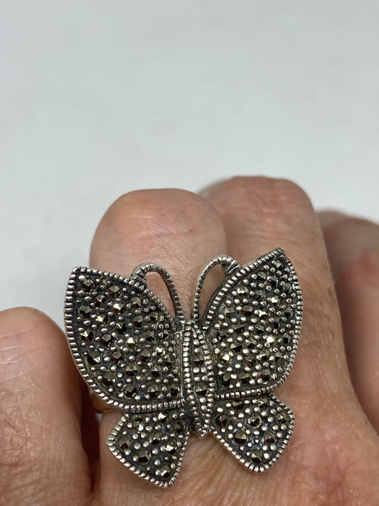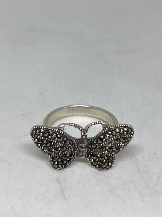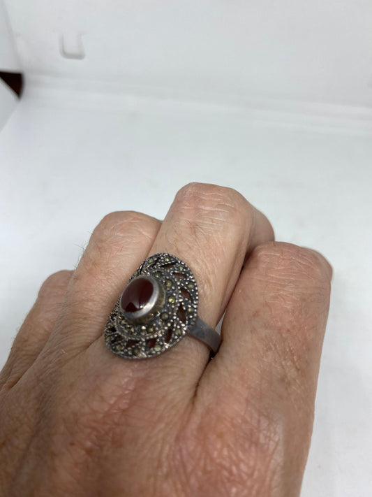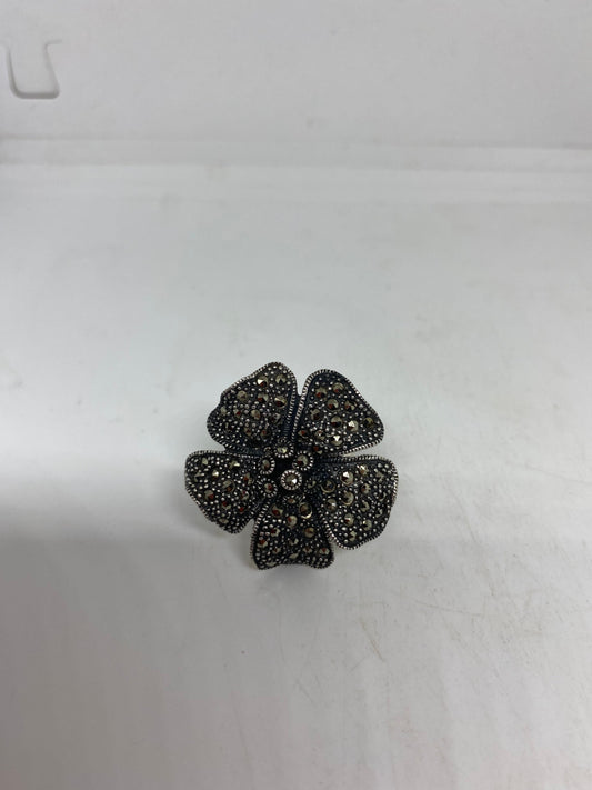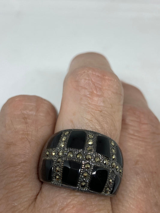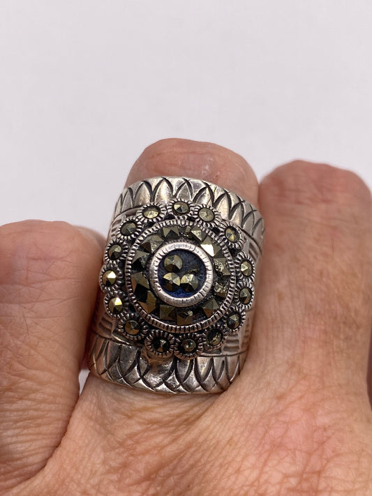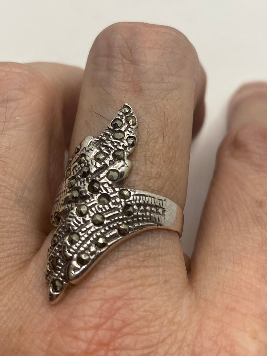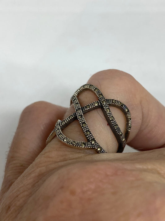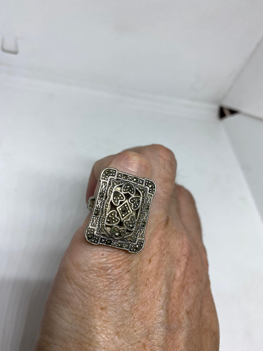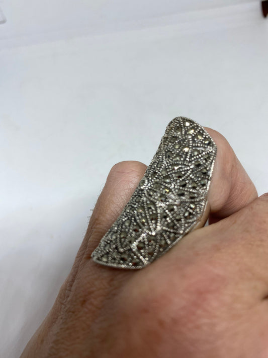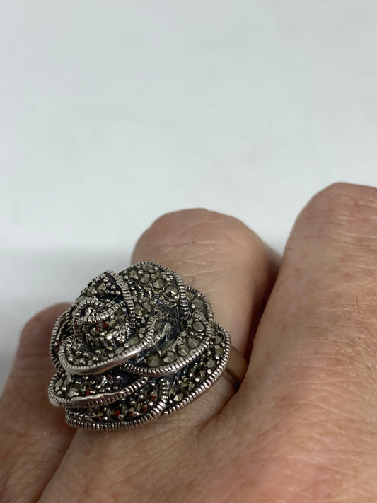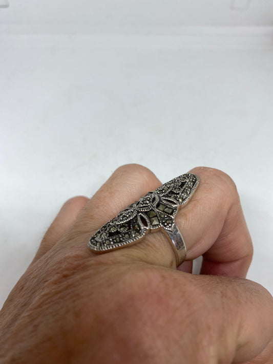 Vintage Handmade Genuine Swiss Marcasite Setting 925 Sterling Silver Gothic Ring
