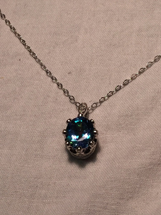 Vintage Handmade Gold finished 925 Sterling Silver Mystic Genuine Topaz Antique Pendant Necklace