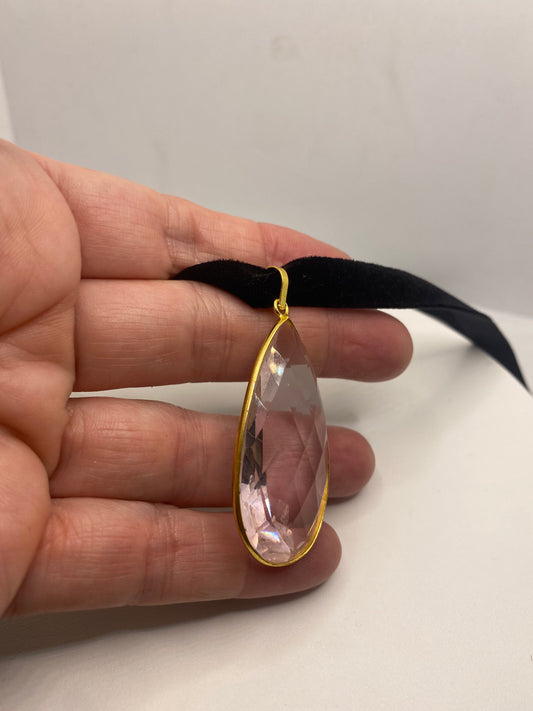 Vintage Handmade Gold Finish Rose Quartz Choker Pendant
