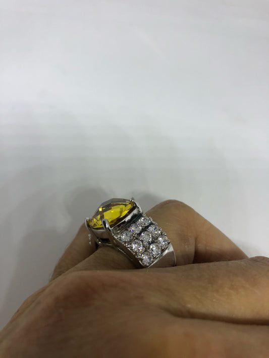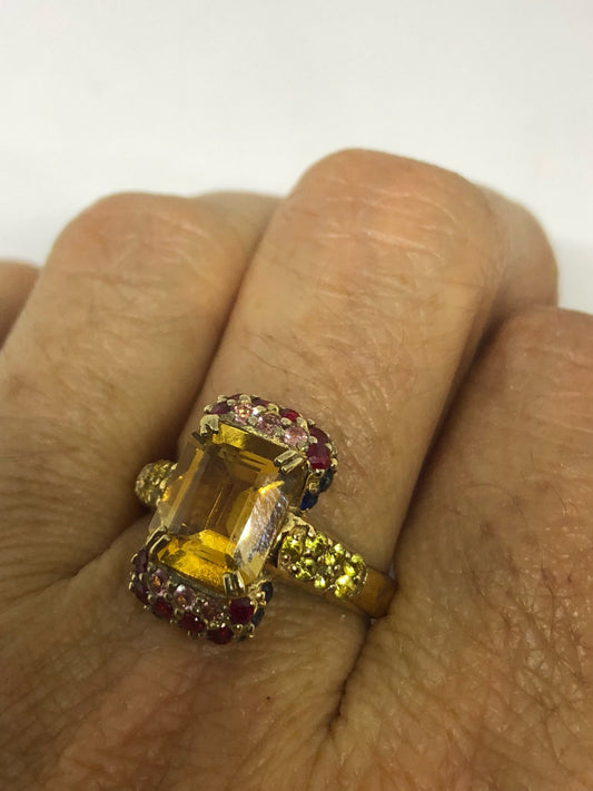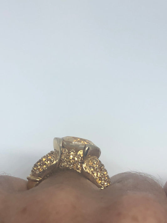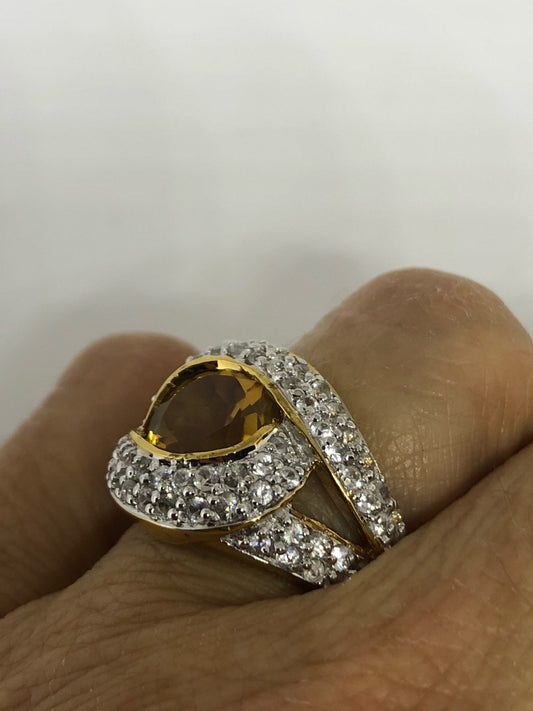 Vintage Handmade Golden Genuine Citrine 925 Sterling Silver gothic Ring