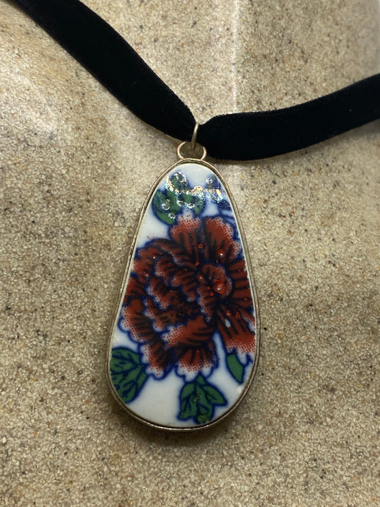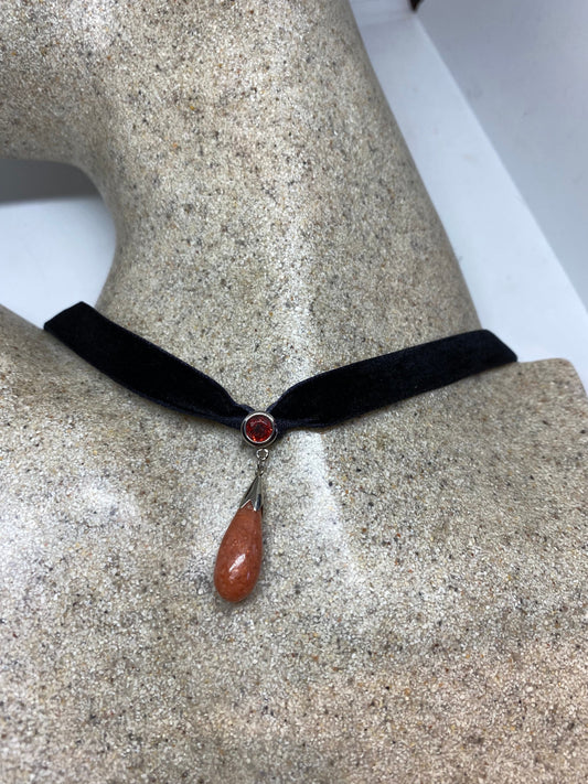 Vintage Handmade Orange Jade Garnet 925 Sterling Silver Droplet Pendant