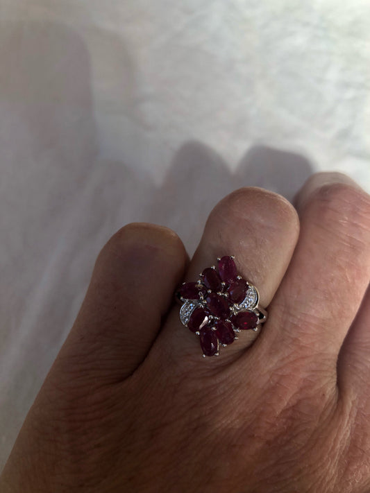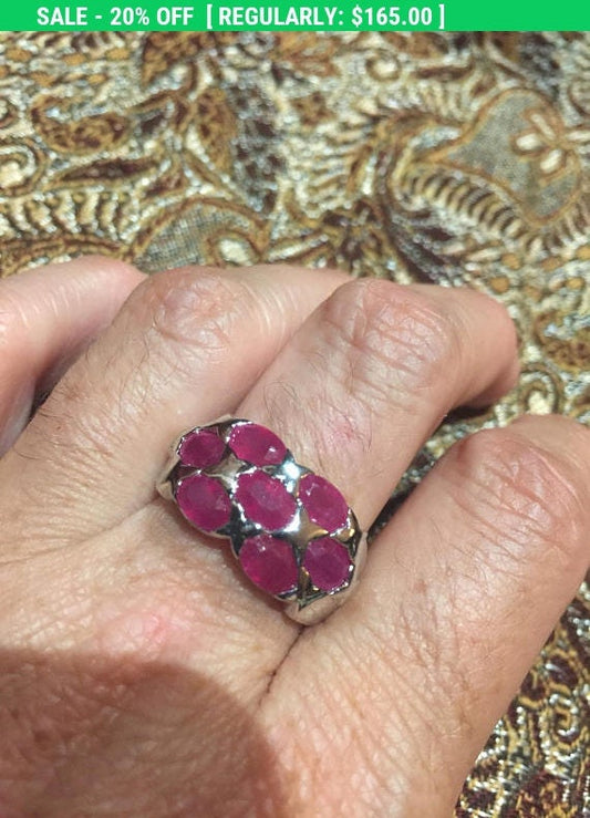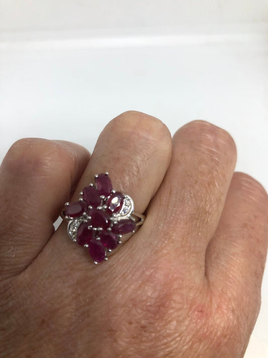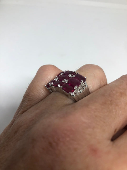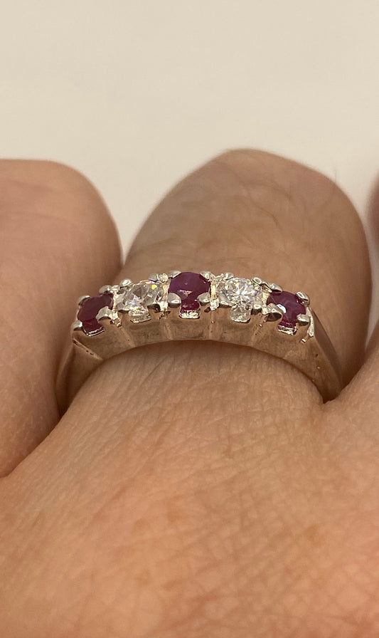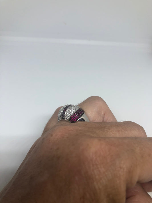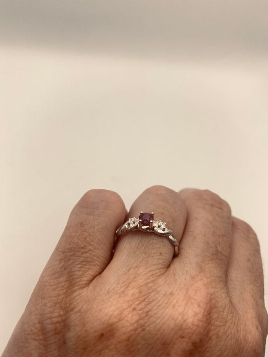 Vintage Handmade Pink Ruby and White Sapphire Setting Sterling Silver Gothic Ring