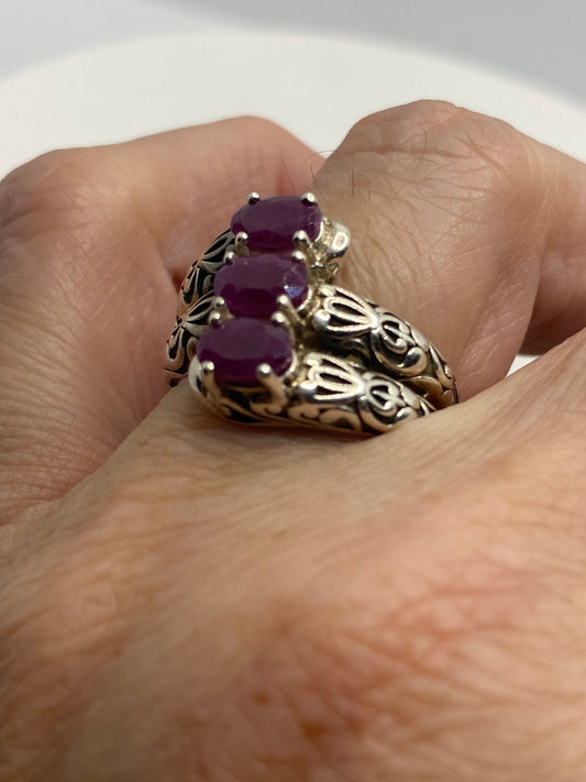 Vintage Handmade Pink Ruby Setting Sterling Silver Gothic Ring