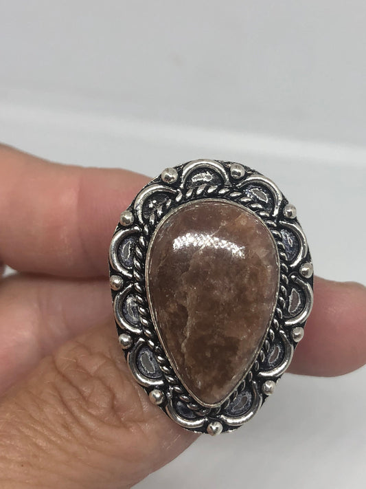 Vintage Handmade Sandstone agate White Bronze Silver Gothic Ring