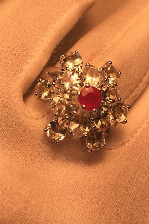 Vintage Handmade Red Tourmaline look Crystal 925 Sterling Silver Gothic Ring
