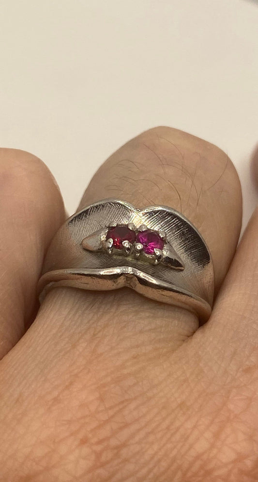 Vintage Handmade Ruby 925 Sterling Silver Wedding Band Ring
