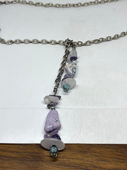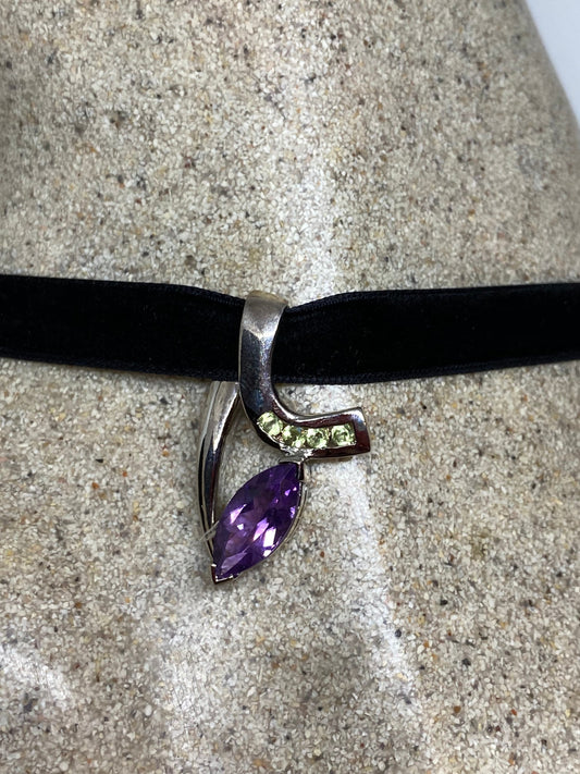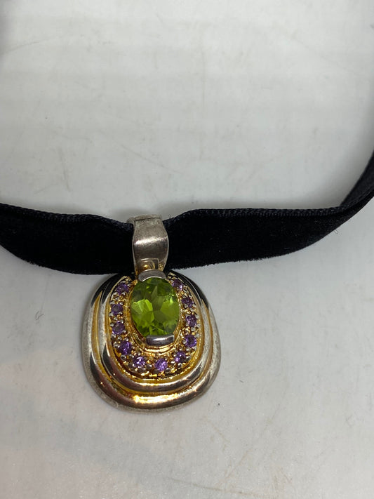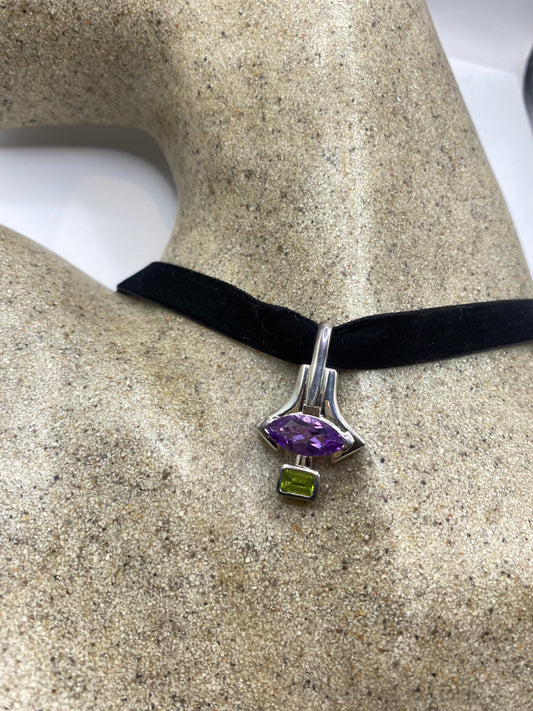 Vintage Purple Amethyst Peridot Choker 925 Sterling Silver Pendant