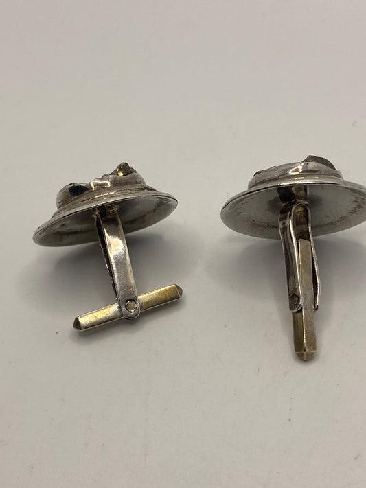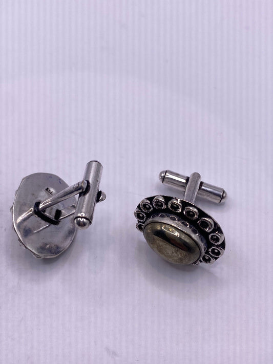 Vintage Pyrite Druzy Cuff Links 925 Sterling Silver