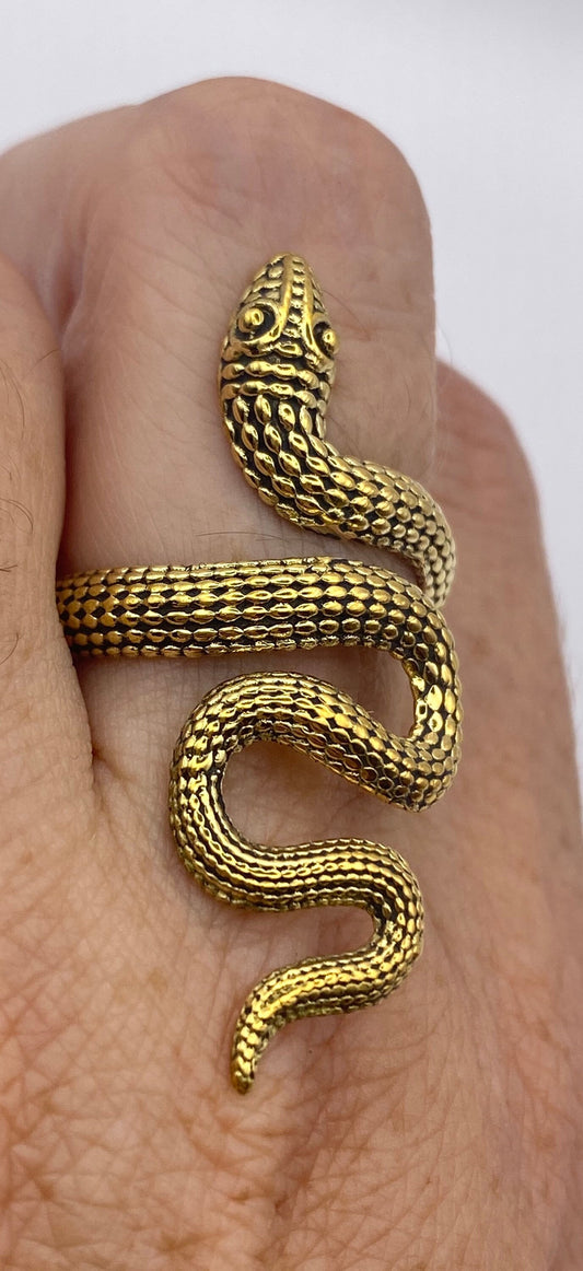 Vintage Snake Bangle Bracelet Gold finished Bronze Green Crystal Eyes