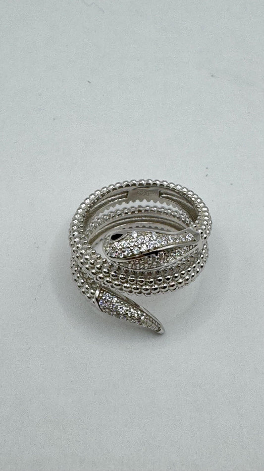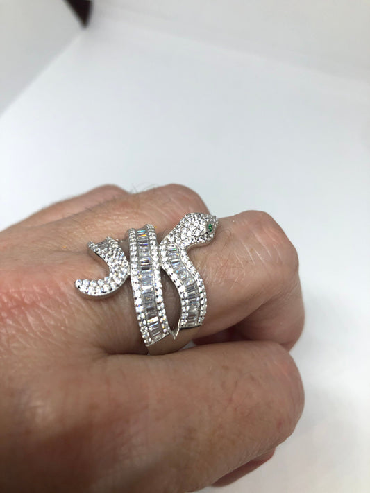 Vintage Snake Ring 925 Sterling Silver Crystal Size 9