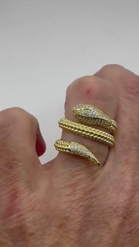 Vintage Snake Ring Gold Filled Crystal Cocktail Ring