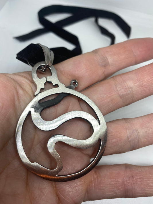 Vintage Stainless Steel Snake Surpant Lucky Yen Amulet Pendant