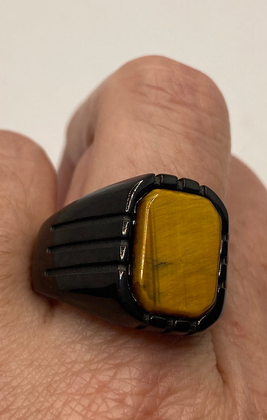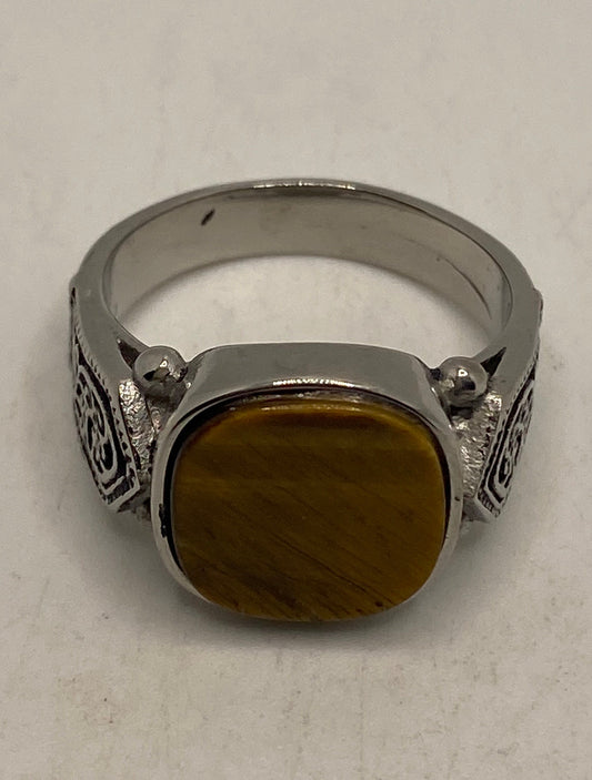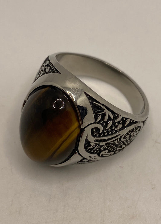 Vintage Stainless Steel Tigers Eye Ring Size 12