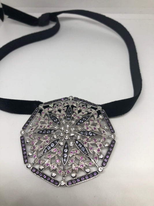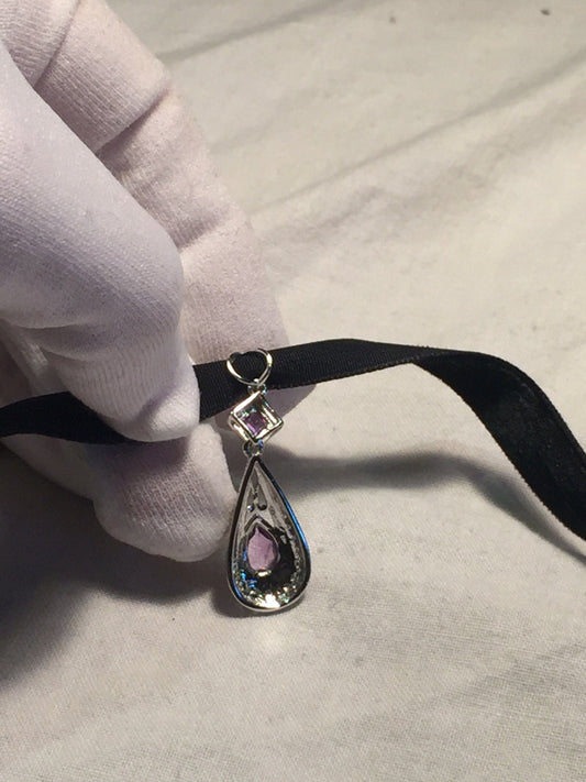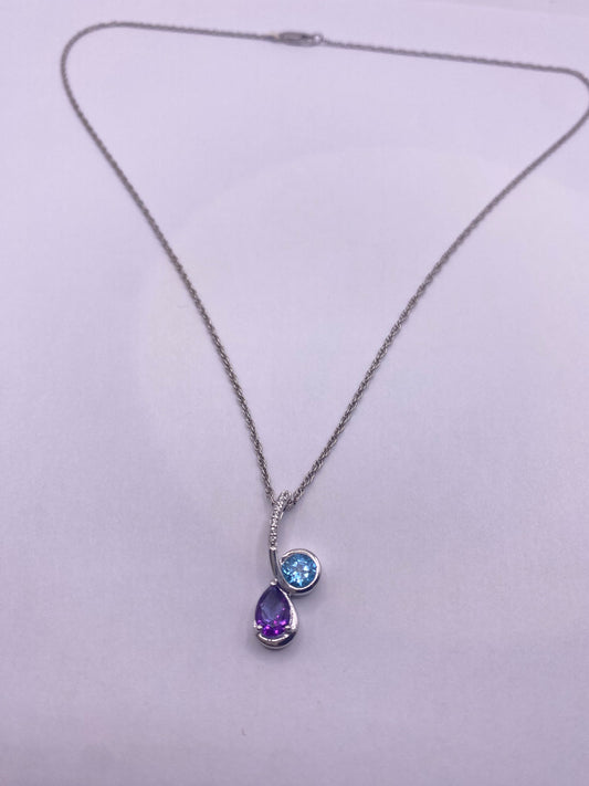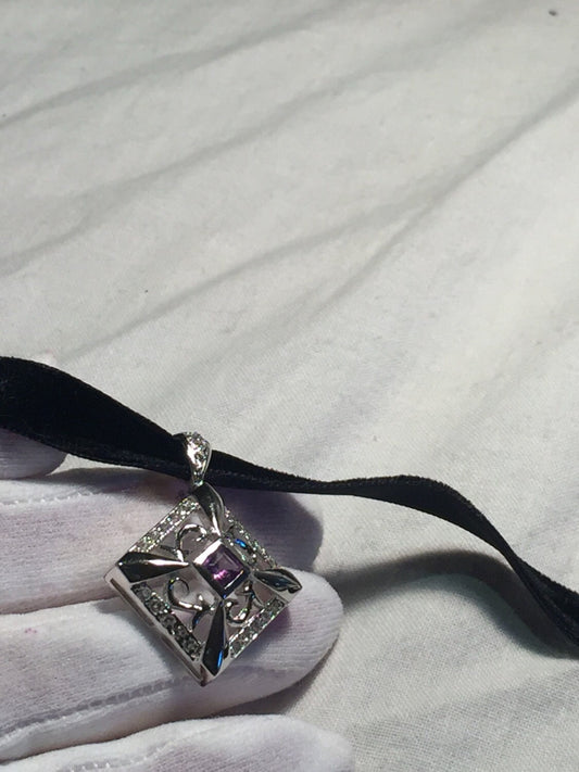 Vintage 925 Sterling Silver Purple Amethyst Pendant Necklace