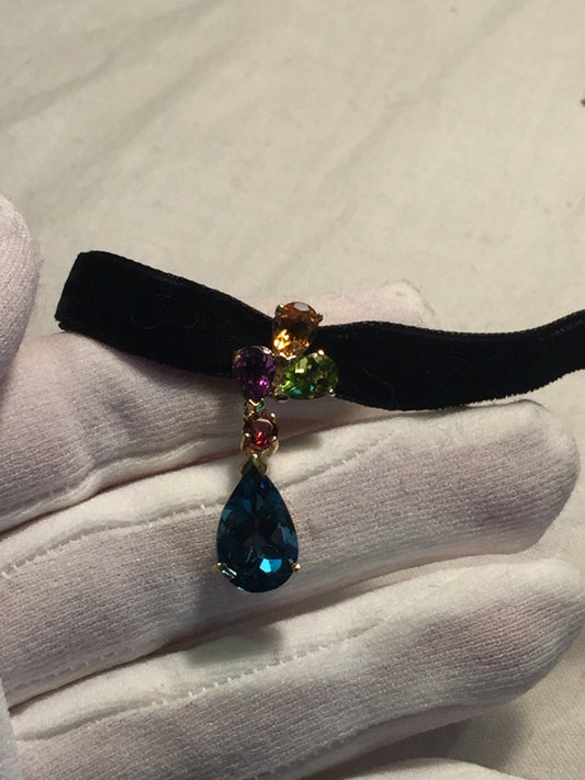 Vintage 925 Sterling Silver London Blue Topaz Mixed Gemstone Pendant