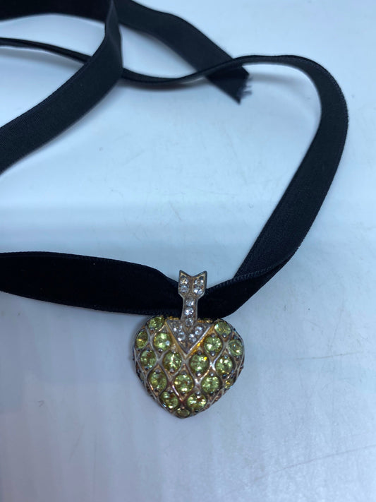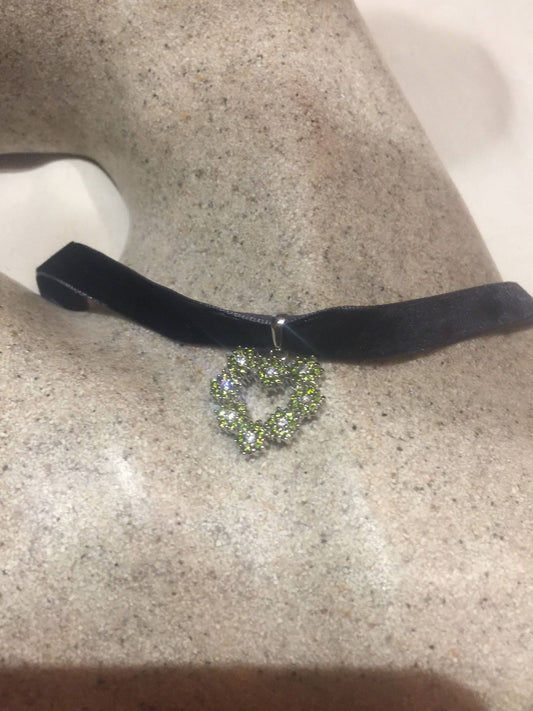 Vintage 925 Sterling Silver Green Peridot Heart Pendant Necklace