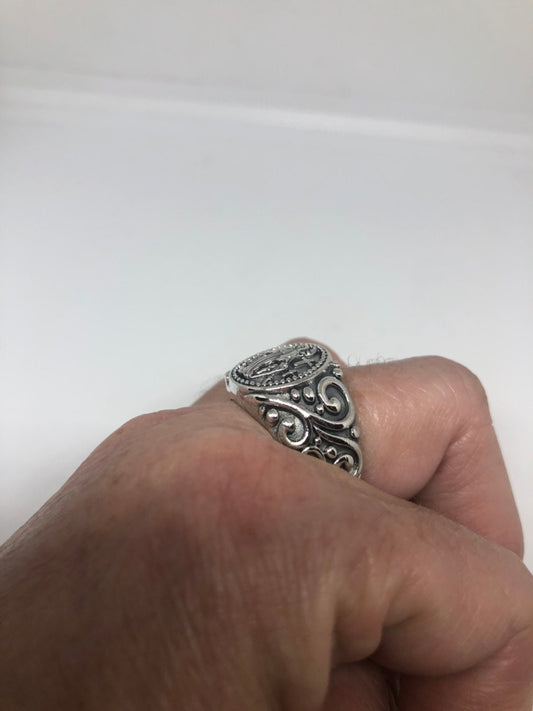 Vintage 925 Saint Mary Amulet Sterling Silver Antiqued Ring