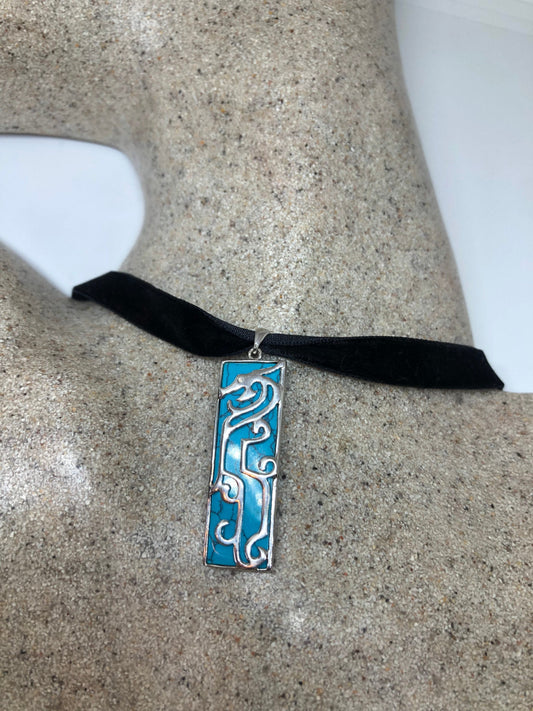 Vintage 925 Sterling Silver Persian Blue Turquoise Vine Pendant Necklace