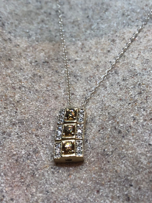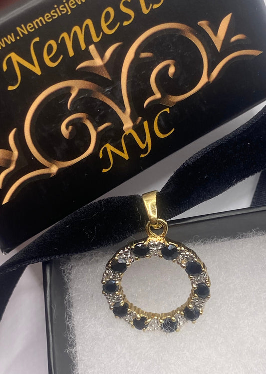 Vintage 925 Sterling Silver Gold Blue Sapphire Diamond Pendant