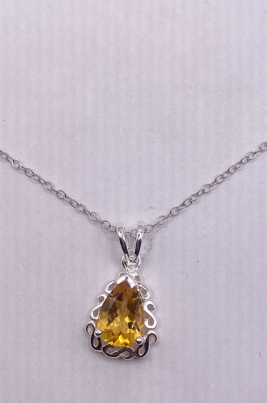 Vintage 925 Sterling Silver Golden Citrine Pendant