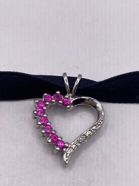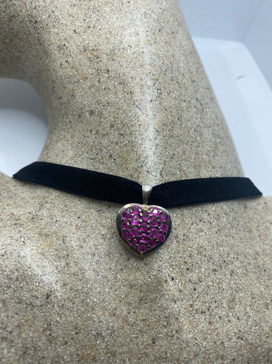 Vintage 925 Sterling Silver Heart Ruby Choker Pendant