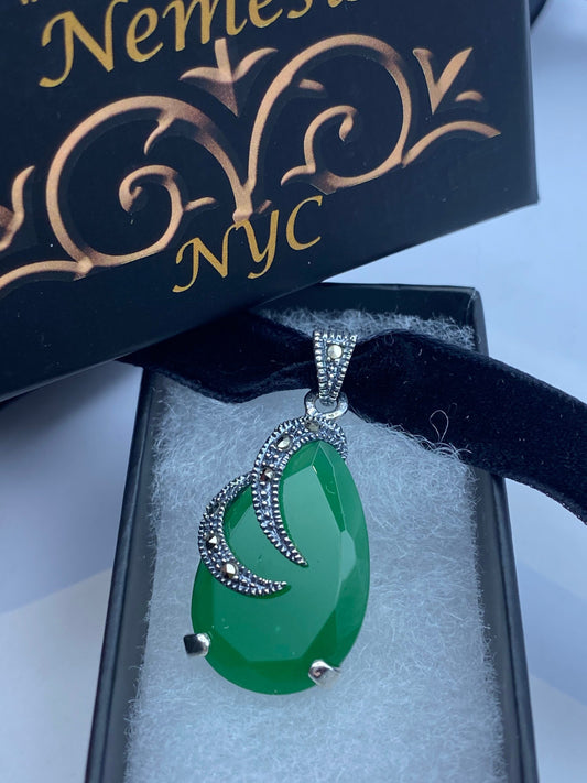 Vintage 925 Sterling Silver Green Chrysoprase Marcasite Choker Necklace
