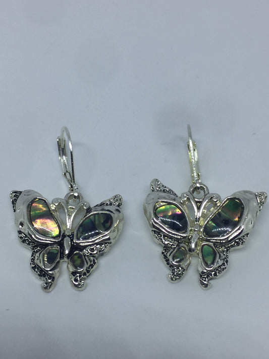 Vintage Handmade Silver Rainbow Abalone Butterfly Earrings