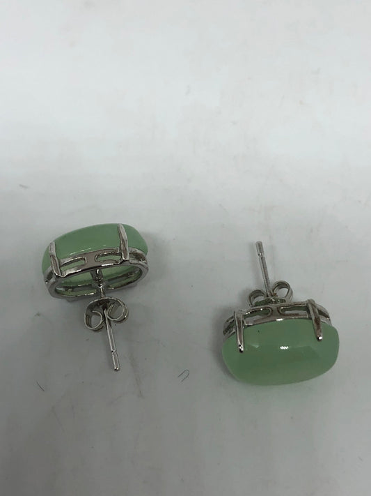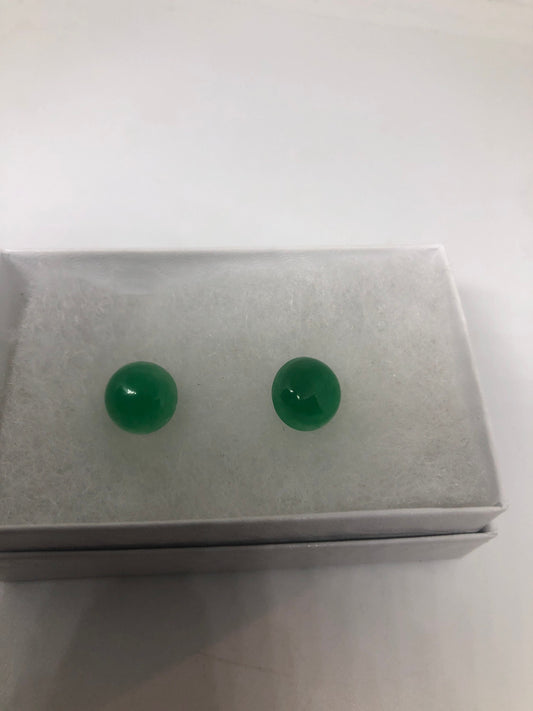 Vintage Fun Green Jade Gemstone Silver Bronze Stud Earrings