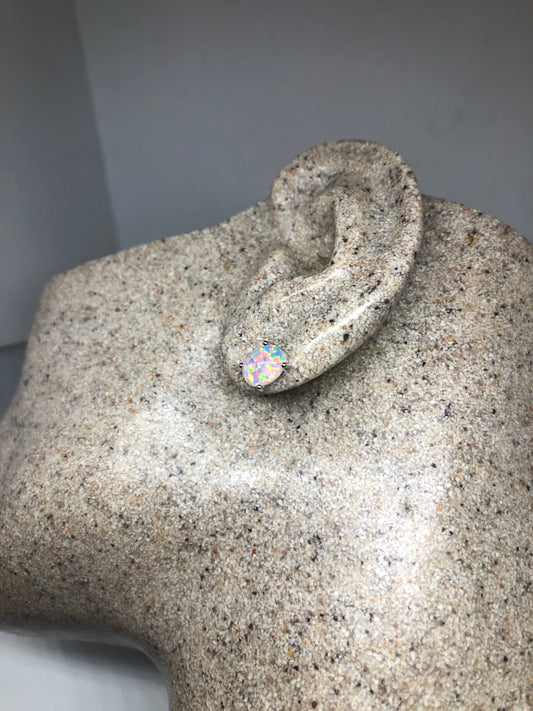 Vintage Opal Earrings 925 Sterling Silver Stud Button