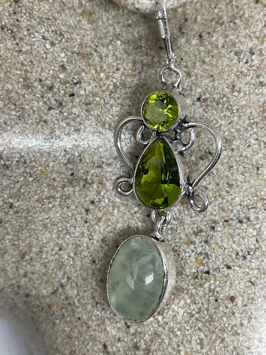 Antique Vintage Green Peridot Jade Silver Dangle Earrings